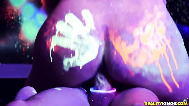 Description:You've seen black light scenes before, but not with this level of execution. Daunting skeleton mask, trippy body paint, glow sticks, pounding music… All to show off Kitty Love's tight body. Imagine you're in a hot and sweaty warehouse, the latest grimy rave location. You're jumping in the air, waving your hands, the lights are making everything glow, and Kitty grinds up against you, flashing her ravenous smile underneath her skull bandanna. She needs you to make her day perfect. Actually, she needs your dick. Are you willing to use a glow bracelet as a cock ring?