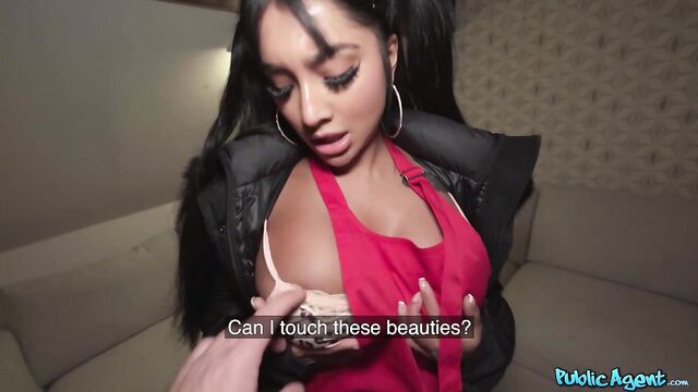 Description:After handing over the sausage pizza I'd ordered, sexy delivery woman Yasmina Khan asked if she could see my sausage! The gorgeous Brit cheekily flashed me her huge fake boobs before getting on her knees and gobbling up my rock-hard dick! Following a sloppy deepthroat blowjob, pigtailed Yasmina jerked me off between her big, pierced titties before sticking out her tattooed ass and taking a doggystyle pounding from behind. Next, the filthy mare sat her trimmed pussy down on my lap and rode me cowgirl and reverse while I spanked her nice plump booty, and then she treated me to an incredible footjob! Since the busty Euro had given me such good service, I decided to tip her well, so after banging Yasmina hard in missionary and lying doggy, I spunked a thick load on the cumslut’s tongue!