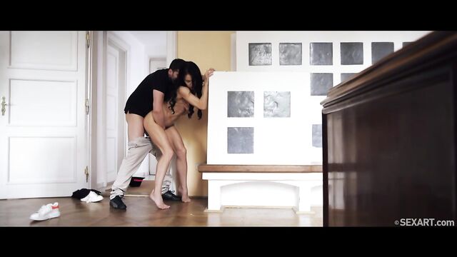 Description: Raven-haired Allatra dances expressively, watched by Kristof Cale, as Nemako Kikson’s erotic movie "Burning Up" begins. So hot for each other, Allatra frees her lover’s stiff cock from his pants as they kiss, kneeling to suck it all the way to the root. Kristof pulls off the athletic beauty’s top and lavishes attention on her nipples as he thrusts a hand into her tight yoga pants to stroke her pussy. Peeling down her pants – and the strappy, sexy panties she’s wearing beneath them – he buries his face between her perky ass cheeks to eat her shaved pussy. Standing, Kristof guides his cock into her and starts to fuck her from behind, making her moan with each pump of his hips. He goes down to lick her clit as he fingerbangs her, then penetrates her again in missionary. Switching to cowgirl, Allatra bounces in Kristof’s lap, sliding up and down on his thick pole energetically. She orgasms noisily as he fills her with his hot load.
