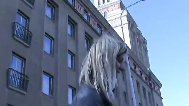 Description: The spring is here and that means our break is over and it’s about the time to explore Czech streets and to find out how Czech girls started to reveal themselves. I didn’t want to waste my time so I asked the girls straight away to show me their bras or boobs for cash. However Czech streets are so commonly known amongst Czech girls that it was a tough job to talk girls into anything. I was wandering the city for three days and during that time I had been successful only twice. The rarest catch was the wonderful 20-years-old Ilona with blue eyes you could drown in. She was quite honest when she told me she liked the smell of money so it wasn’t very difficult to convince her into something more than just showing her boobs. I banged her next to the bus stop and to make it easier for her to remember me, I signed her face with my cum. What a wonderful way of celebrating spring! Am I the only one wondering what are Czech girls willing to do for money? Just watch this one, it’s hard to believe.