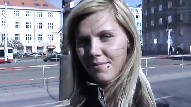 Description:The spring is here and that means our break is over and it’s about the time to explore Czech streets and to find out how Czech girls started to reveal themselves. I didn’t want to waste my time so I asked the girls straight away to show me their bras or boobs for cash. However Czech streets are so commonly known amongst Czech girls that it was a tough job to talk girls into anything. I was wandering the city for three days and during that time I had been successful only twice. The rarest catch was the wonderful 20-years-old Ilona with blue eyes you could drown in. She was quite honest when she told me she liked the smell of money so it wasn’t very difficult to convince her into something more than just showing her boobs. I banged her next to the bus stop and to make it easier for her to remember me, I signed her face with my cum. What a wonderful way of celebrating spring! Am I the only one wondering what are Czech girls willing to do for money? Just watch this one, it’s hard to believe.