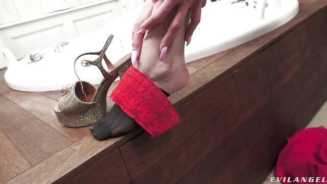 Description:Super-busty blonde Tanya Virago is preparing a bath when husband Yanick Shaft arrives home from work. Having had a rough day, Yanick opts out of a bath with Tanya. The short-haired MILF then performs a sensual tease as Yanick watches; she strips, showing off her massively big boobs and long legs. She jumps in the bathtub and masturbates, eventually seducing her hung hubby into a heated anal tryst. Tanya climbs out and gives an intense blowjob, choking on Yanick's raging boner through a throat fuck. Next, intercourse: Yanick pummels her wet cunt, fondling Tanya's clit while fucking her. She whimpers when he roughly reams her rectum. She takes a rectal ride, her huge knockers bouncing to the rhythm of Yanick's thrusting big cock. The kinky backdoor romp features titty fucking, ass-to-mouth fellatio, and an intense cum climax: Tanya cradles her luscious breasts in her arms as Yanick sprays sperm over her righteous jugs!