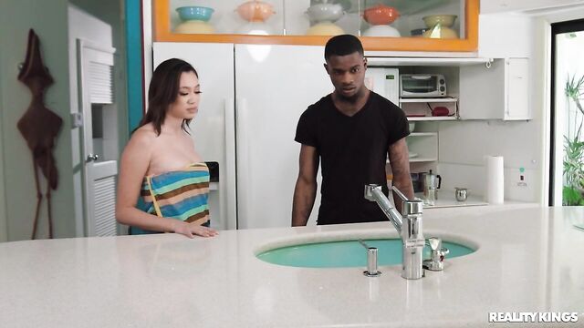 Description:Madi Laine has been waiting for her bf's best friend, Damion Dayski... to fix her clogged sink, of course. But when Madi lets him in wearing nothing but a towel, then drops it as he's inspecting the plumbing, Damion can't help but look at his best friend's hot woman, especially when she sucks his cock and brings him into the bedroom. After catching the pair when he gets home early, Dwayne Foxx tells his buddy, "You were supposed to fix my sink, not my pipes!" but Madi talks both guys into sticking around for a threesome. This horny minx got her pipes fixed after all!
