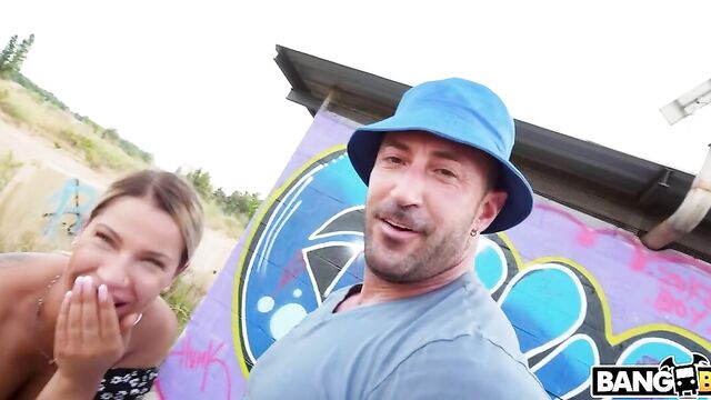 Description: Angel Rivas met with Emilio Ardana in a public parking lot. She showed off her body, flashed her tits at him and the cars that were passing by. They wanted to do more. So they went to a slightly more secluded place. But only slightly. Still from time to time people walked by and stared at them as they fucked. And they fucked rough. The British would say the buggered. Emilio went straight for her ass. He thrust his dick in and banged her like a rabbit. He fucked her in all positions until her ass gaped like an open gate. Then he s**t his cum in her mouth.